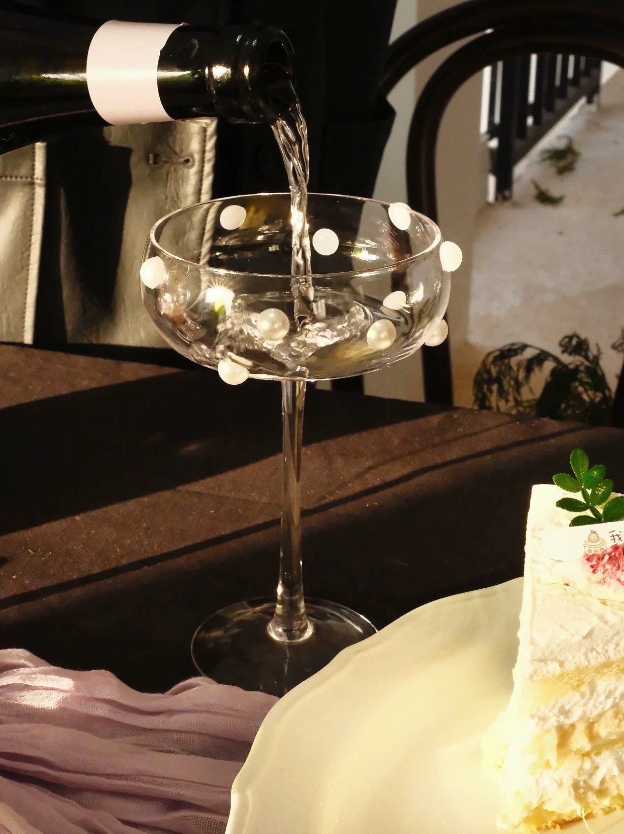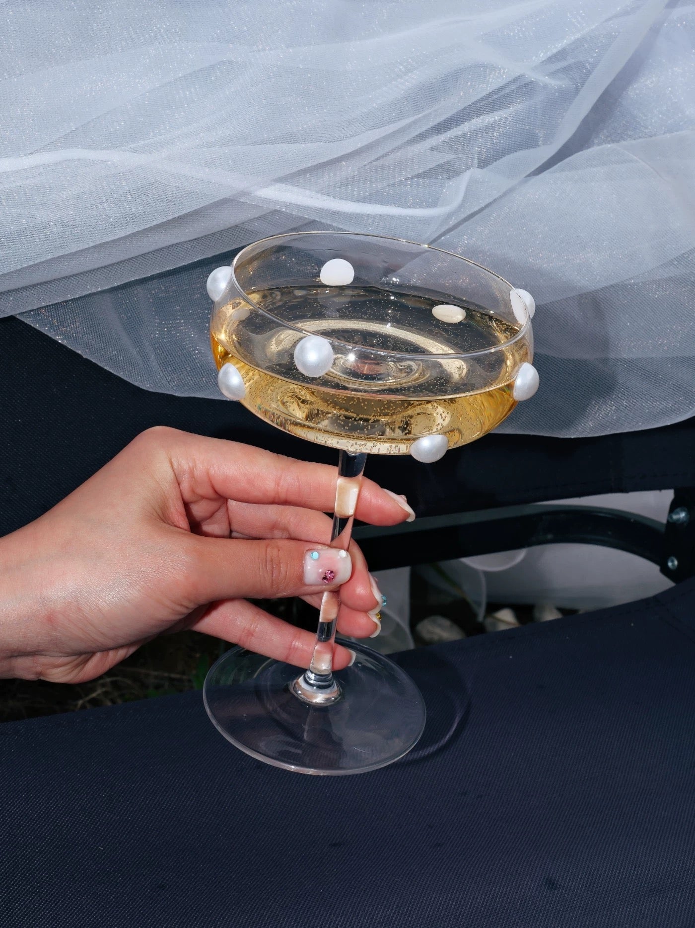 【IN Chaos】パール貼り付け高脚グラス
